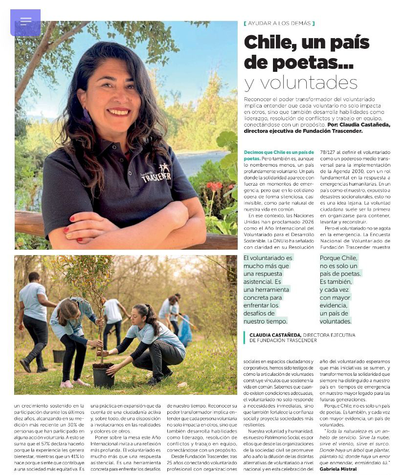 Decimos que Chile es un país de poetas. Pero también es, aunque lo nombremos menos, un país profundamente voluntario. Un país donde la solidaridad aparece con fuerza en momentos de emergencia, pero que en lo cotidiano opera de forma silenciosa, casi invisible, como parte natural de nuestra vida en común.